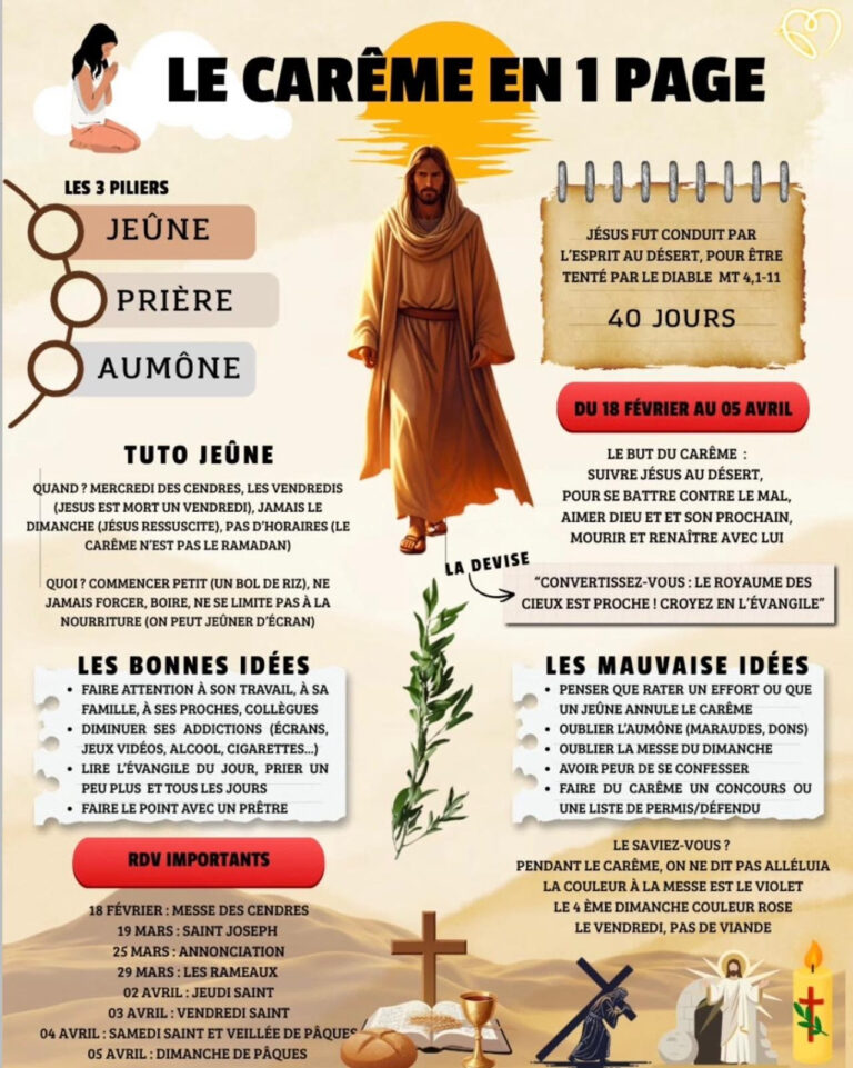 Le Carême est un temps de préparation de quarante jours à la fête de Pâques, cœur de la foi chrétienne, qui célèbre la résurrection du Christ.