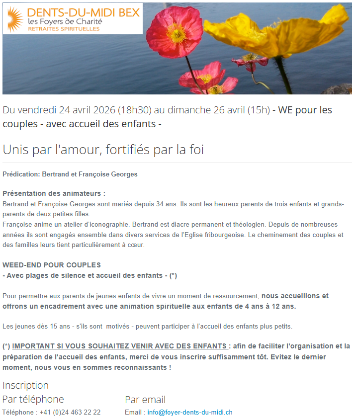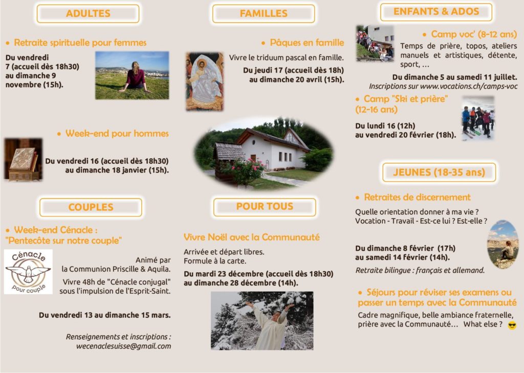 Week-end de Pâques et de l’Ascension pour les familles. Retraites pour couples, retraites personnelles.